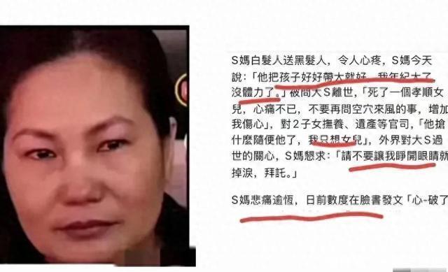 S妈面对媒体,一改往日上战场的表情,也不聚拢各地粉丝为她加油了! 说不争了,心力憔悴,只想念自己的女儿!每日以泪洗面,老年丧子,白发人送黑发人,这对谁都是一个巨大的打击,况且放在一心培育成大明星的S妈身上!其中的酸甜苦辣,只有她知道!人生真是无常!失去了宝贝女儿,损失惨重!